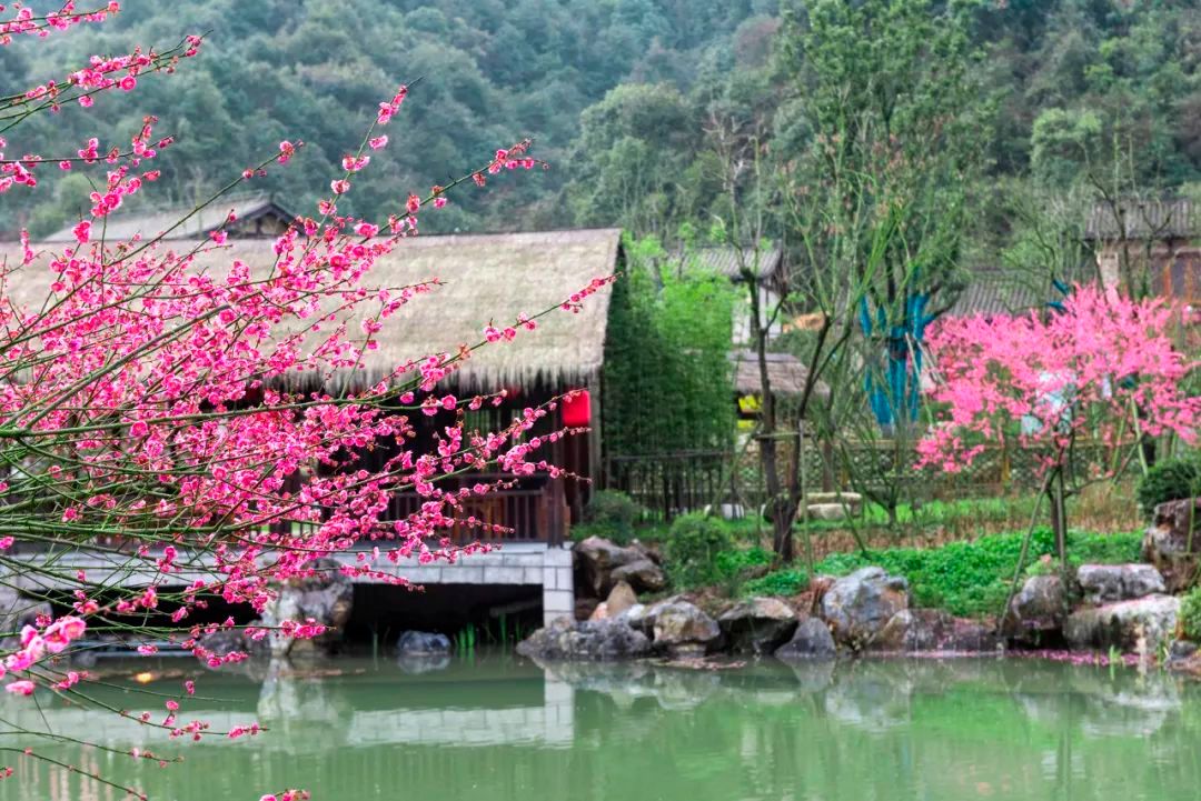 从桃花、梨花、樱花到三角梅、马鞭草、紫藤......不管什么时候小镇都绚丽多彩,充满花香。