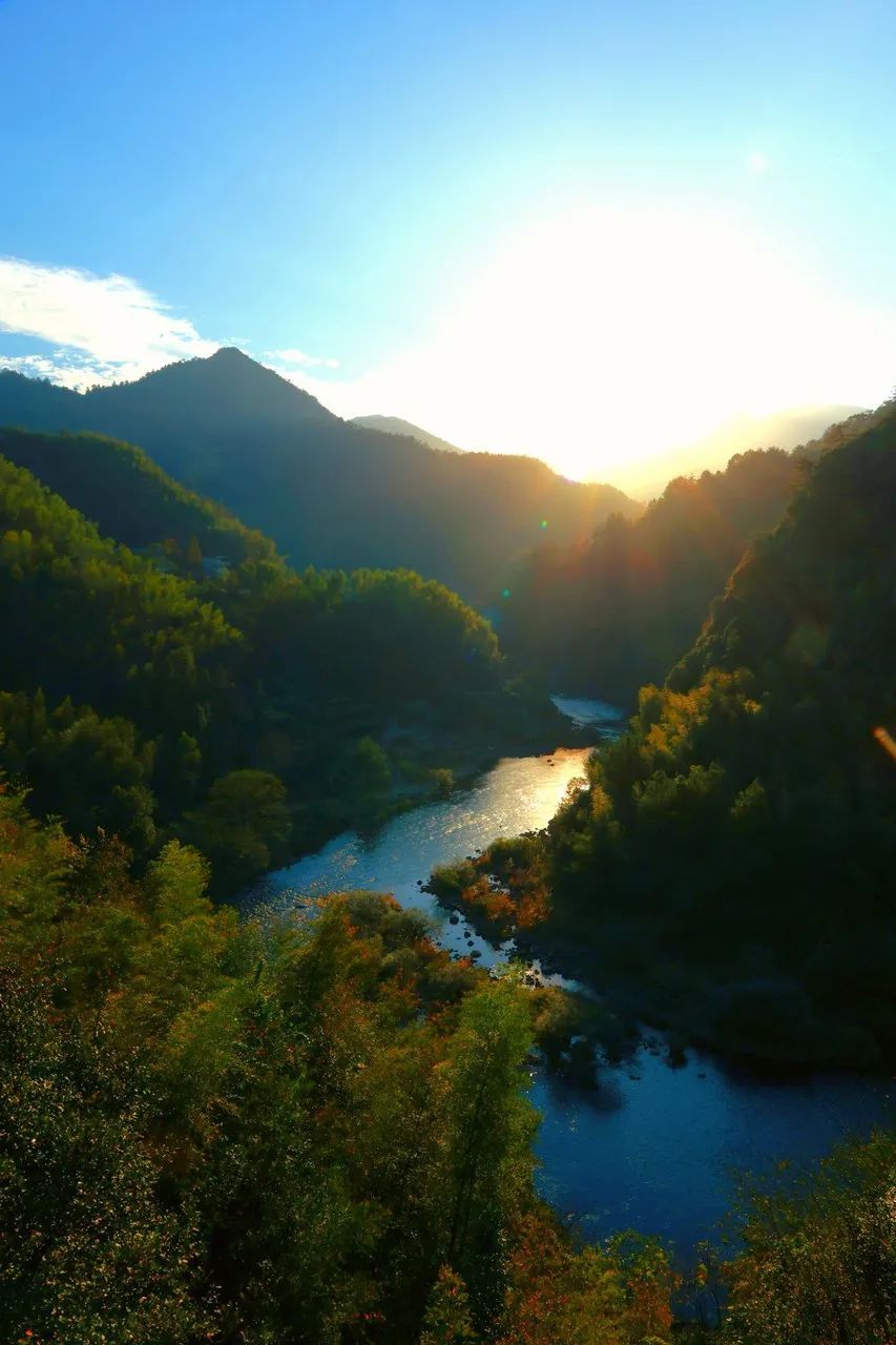 远处,蜿蜒的青山隐约可见,一斜夕阳从山头洒下来,颇有“幽巷深处有人家”的意境。