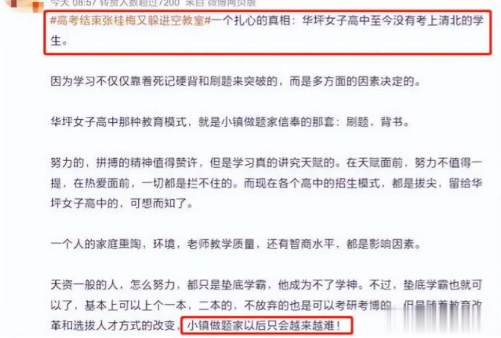 在这些人眼里看来,没有考入清华北大就代表着失败。