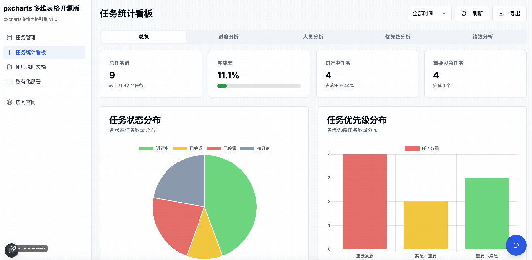 接下来和大家分享一下pxcharts多维表格开源版的功能亮点,让大家更好的感受它的价值。