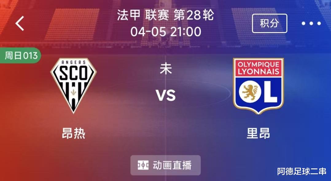 则目前排名法甲第4,积47分,处于欧冠资格赛区,赛季目标明确。近10场比赛,里昂取得2胜4平4负,状态同样不尽如人意。期间,球队共打入11球,失球14个,场均进球1.1个,场均失球1.4个,攻防两端表现略优于昂热,但仍波动较大。在主场,里昂5场比赛取得1胜2平2负;客场同样5战1胜2平2负,表现均较为一般。近10场比赛中,里昂有3场实现零封,防守端表现尚可;有2场未能破门,进攻端效率尚可但稳定性不足。