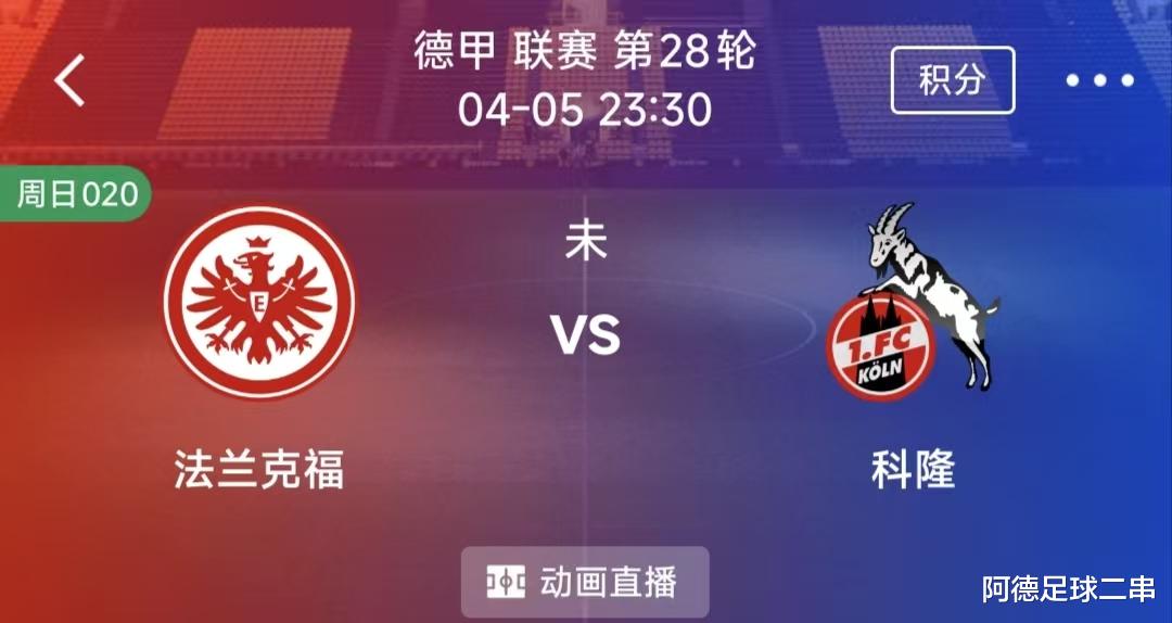 周日020德甲:法兰克福 VS科隆 时间:2026-04-05 23:30