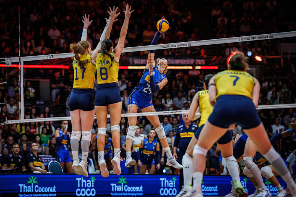 曼谷赛场的决胜局灯光亮得晃眼,看台上此起彼伏的加油声突然弱了下去 —— 巴西队那记没传到位的一传,刚好把球送到意大利队眼前。之前扣球总差一口气的埃格努,这时候突然绷直了身子,一锤子把球砸过拦网。9 月 6 号这场半决赛,不光让意大利把连胜加到 35 场,更让场边两个七十多岁的老帅成了焦点,一个攥着战术板皱眉,一个冲着队员喊战术,那隔空较劲的样子,比比赛还让人揪心。最后这支世界第一的队伍,连着赢了 7 场拿了 2025 年女排世锦赛冠军,算上这回,距离上一次拿世锦赛冠军已经 23 年了,国际赛事的连胜也硬是冲到了 36 场。