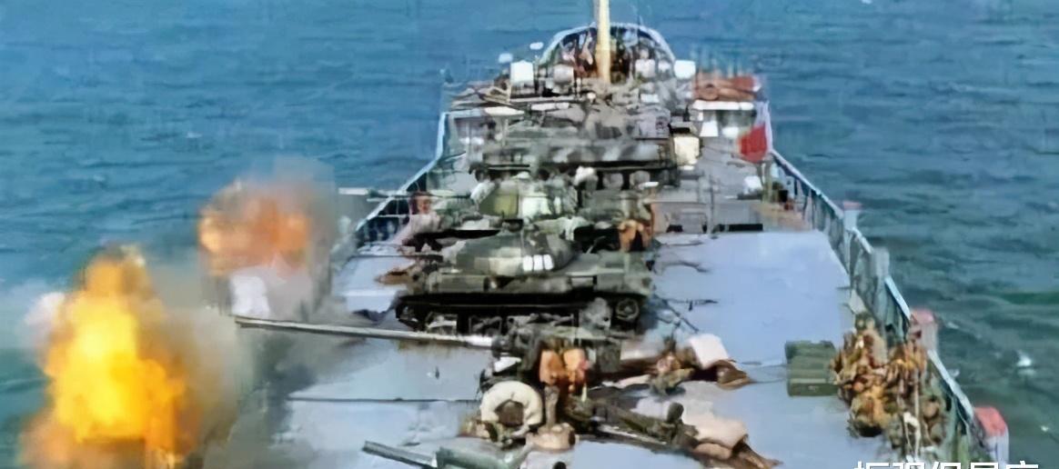 为了弥补火力上的不足,当时解放军还征召了沿海较大的货船,把陆军坦克和大口径火炮拉上去固定好,当作舰炮来用!