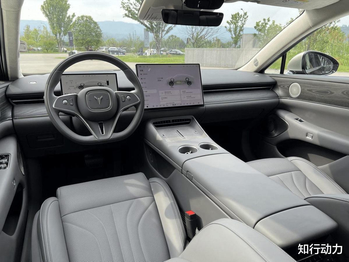 内饰方面采用了大量的皮革包裹,虽然看不到实体的按键,但有了鸿蒙座舱的加持之后,操作起来也非常方便。
