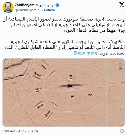 在袭击之后,它们被转移了,似乎没有明显的损坏,也不清楚转移导弹的原因。然而,他表示:这些导弹看起来完好无损,这表明以色列的袭击有一个非常精确的目标,空军基地和邻近机场的其他地区似乎也没有受到破坏。