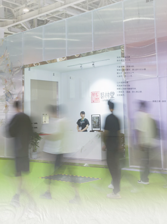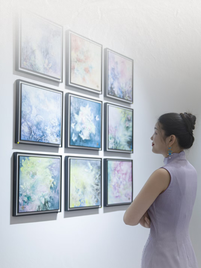 展馆的光影流转,映照着粉彩的柔色