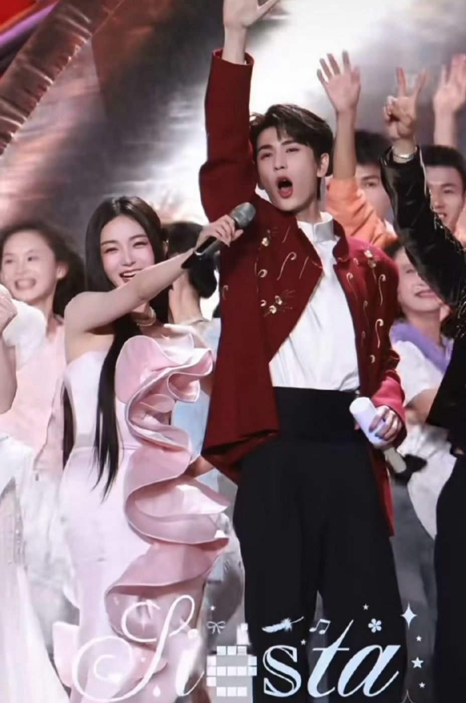 跨年晚会的舞台上,群星璀璨,热闹非凡。在这众多精彩瞬间中,靳梦佳给张凌赫递麦的瞬间,令人眼前一亮,这一幕充满了看点,值得好好分享一下!