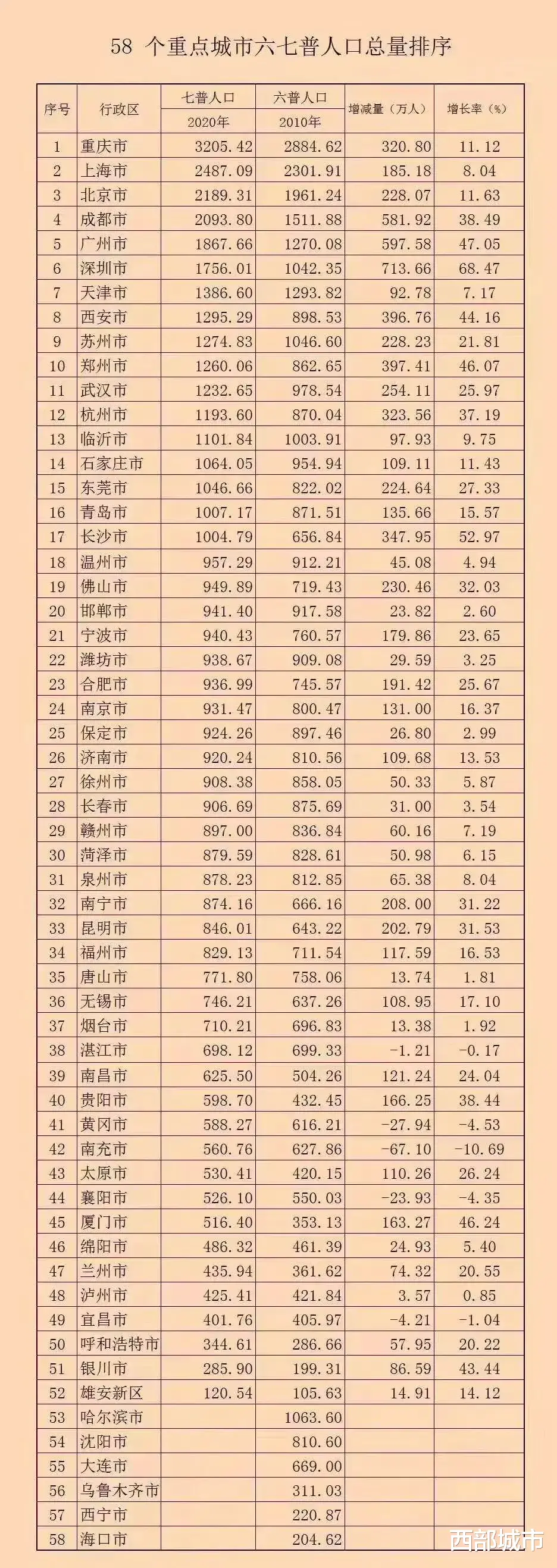 举个例子,根据“七普”数据,深圳、广州、成都在2010年到2020年的十年间,常住人口增量分别达到了713万、598万、581万,也即年均增长50万以上,相当于每一年新涌入了一个大县的人口体量。