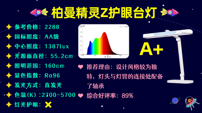代表型号:柏曼精灵Z护眼台灯