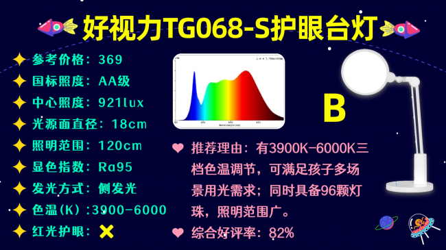 代表型号:好视力TG068-S护眼台灯