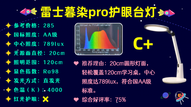 代表型号:雷士暮染Pro护眼台灯