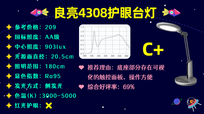 代表型号:良亮4308护眼台灯