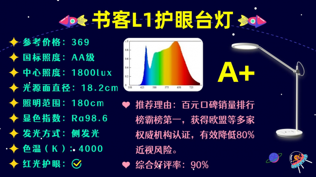 代表型号:书客护眼台灯L2 Pro