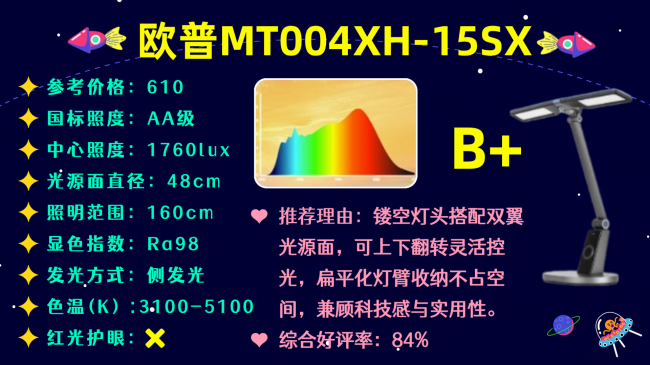 代表型号:欧普MT004XH-15SX护眼台灯