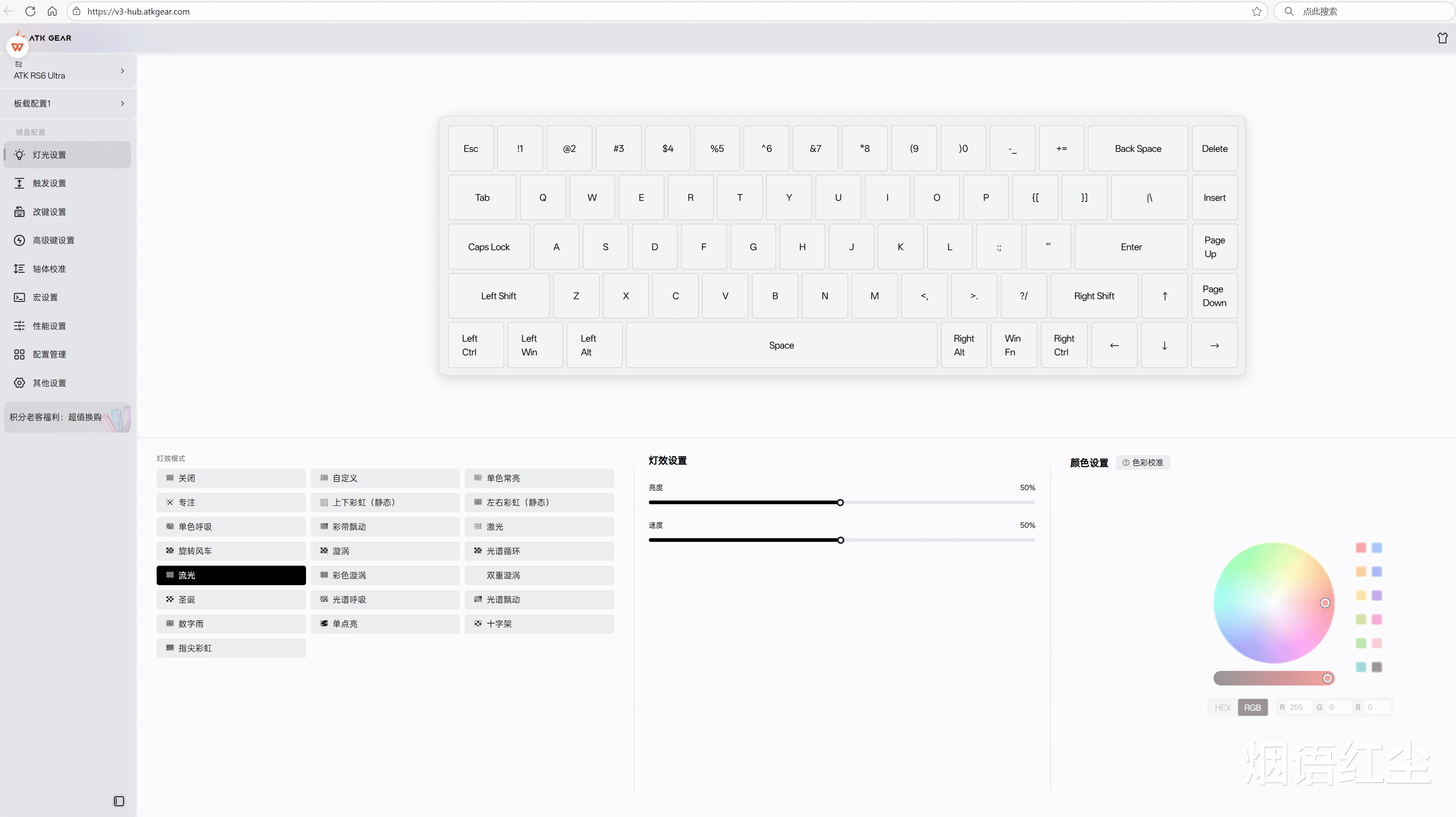 值得一提的是,ATK RS6磁轴键盘搭载了网页驱动,使用更加方便。键盘的驱动软件功能丰富,除了键程设置外,还支持宏编程、灯光调节等多种功能。特别值得一提的是“冠军预设”功能,可以一键切换职业选手同款参数配置,让普通玩家也能体验职业选手的操作感受。