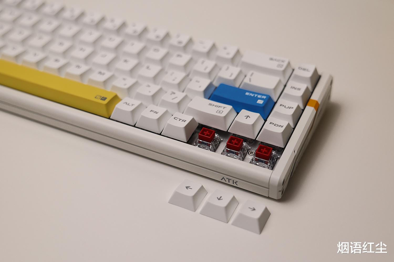 ATK RS6 Ultra白影战士版采用全铝合金机身,质感细腻且坚固耐用。键盘的整体设计语言充满机甲风格,线条硬朗却不失流畅,完美契合“白影战士”这个命名所带来的想象。白色主色调搭配恰到好处的点缀,既简洁大方又不失电竞氛围。