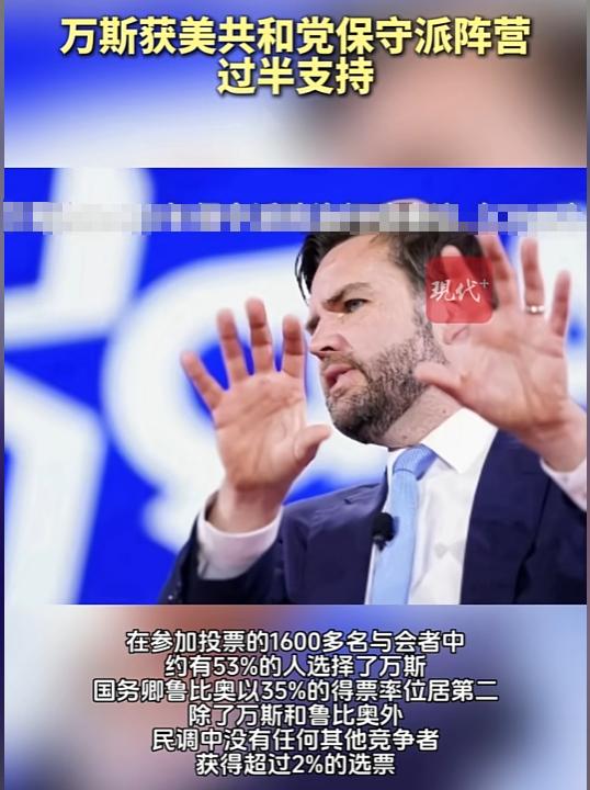 万斯异军突起,“反战”成新门票本就暗流涌动的保守派群体里,副总统万斯成了新一代“反战领袖”。3月底全国保守派大会模拟投票,他的支持率一骑绝尘,把国务卿卢比奥甩在后头。