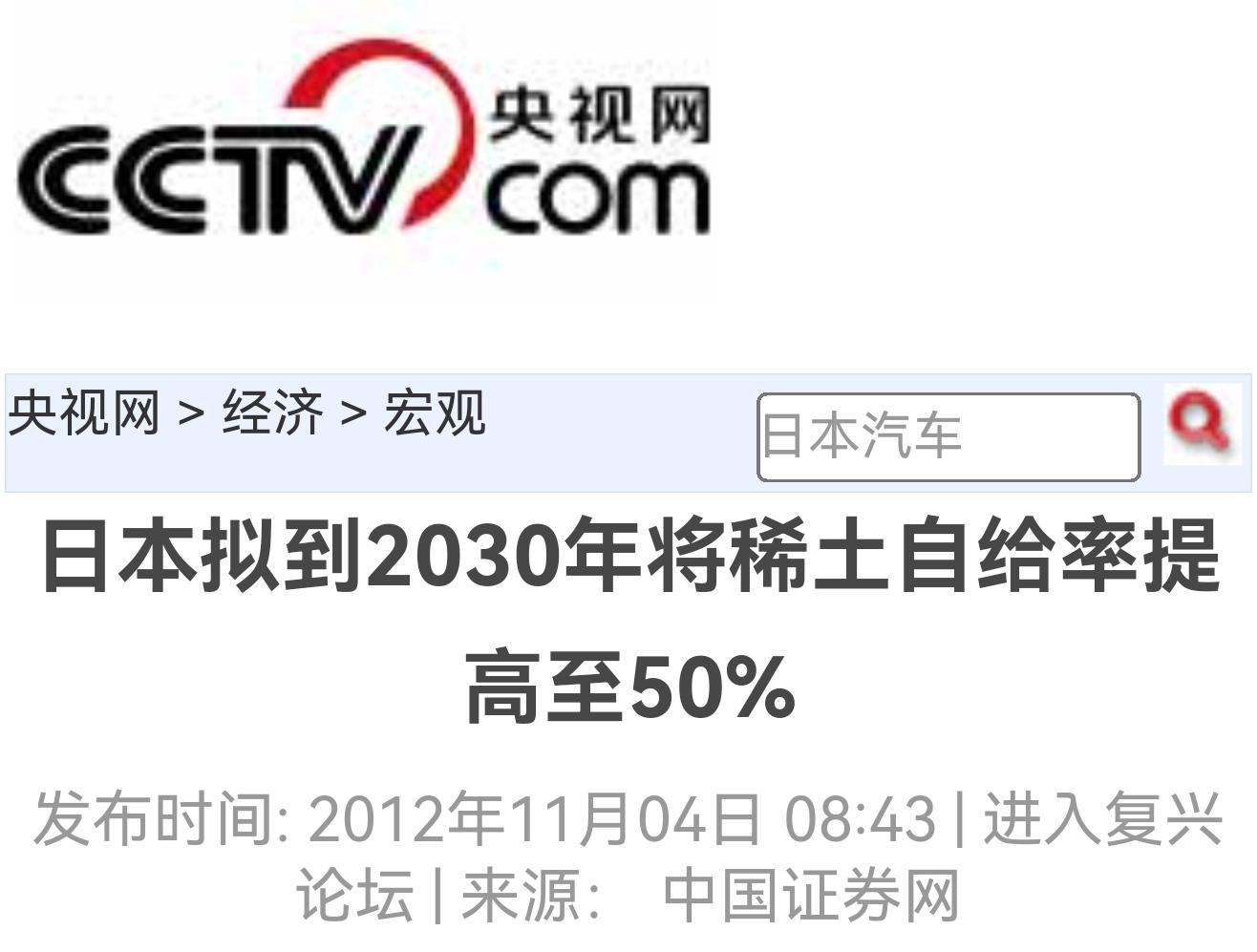 2010年,中国渔船在钓鱼岛海域被日本巡逻船冲撞后,中国第一次打稀土牌,对日本实施稀土管制。虽然后来恢复了供应,日本还是吓得不轻,开始在北海道、四国等地勘探海底稀土资源。并从越南、印度等国进口低纯度稀土矿,在本土冶炼提升纯度,计划于2030年将稀土自给率提高至50%。