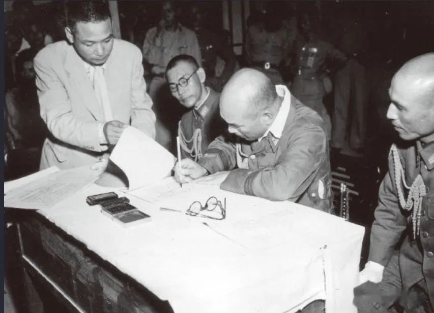 1945年9月20日,中国第五战区司令长官刘峙在河南漯河接受日军第12军司令官鹰森孝投降。