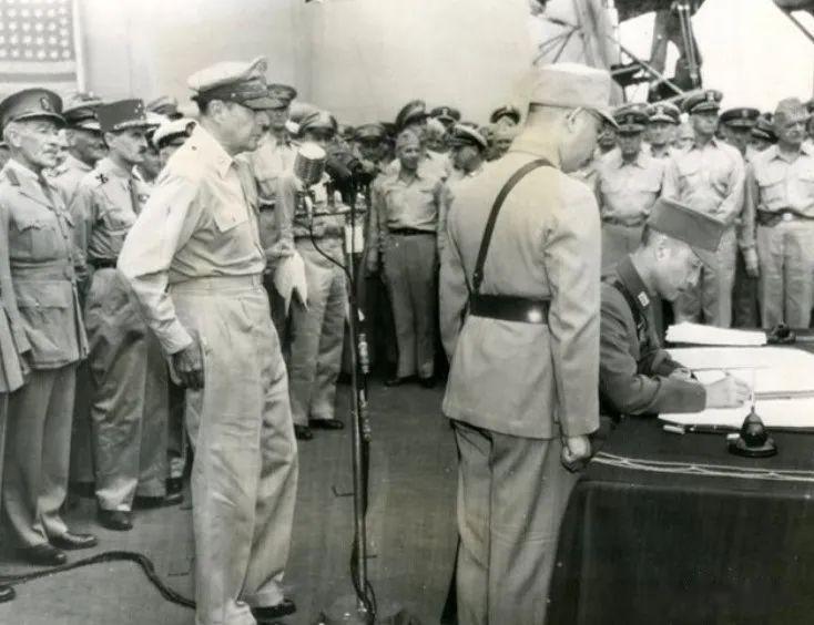 9月2日,日本向盟国投降签字仪式在东京湾美国军舰“密苏里号”上举行。上午9时4分,日本政府全权代表重光葵,日本大本营全权代表梅津美治郎,分别在《无条件投降书》上签字。盟军最高统帅麦克阿瑟上将,美国尼米茨海军上将、中国徐永昌上将、英国福莱塞海军上将、苏联杰列维亚科中将,以及澳大利亚、加拿大、法国、荷兰、新西兰等国代表陆续签字。