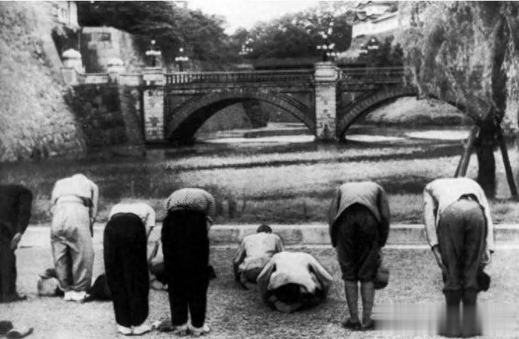日本国民得知投降消息后,向皇宫跪拜,如丧考妣