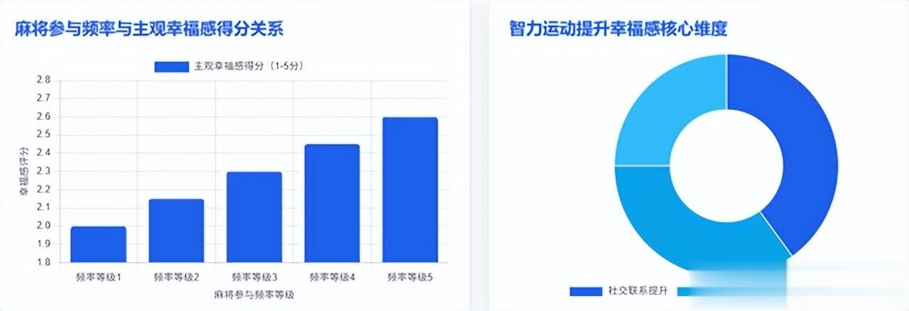 发表在《老龄科学报》中的一项研究,分析了36,934名45岁及以上群体的数据,研究发现,参与麻将和桥牌等智力运动不仅提高社交互动频率,还与主观幸福感评分显著正相关。在统计回归分析中,麻将参与频率每增加一级,其主观幸福感评分就会上升约0.15分(在1–5分的幸福感量表中显著)。这说明,麻将在促进社交联系的同时,也通过增强人际互动和认知活动,提高了参与者的心理幸福感。