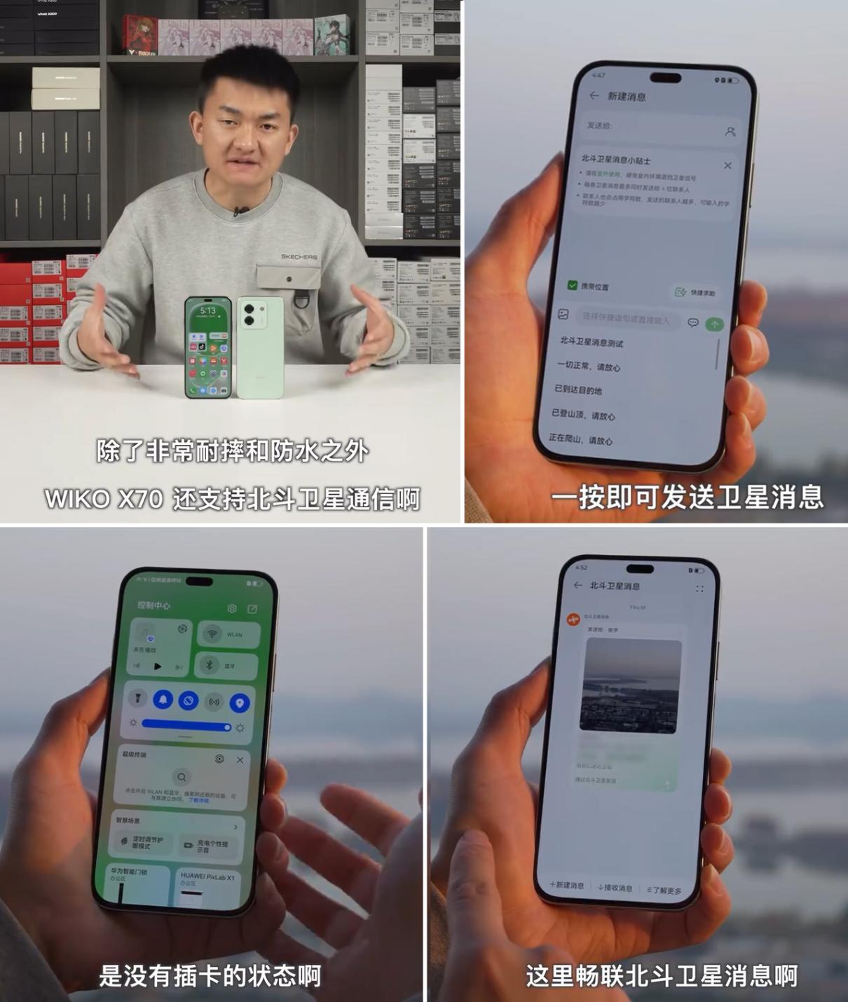 于是,在2025年10月底,WIKO正式推出了首款主打线上的产品 WIKO X70-先是在京东平台完成新品首发,随后于12月登陆抖音电商,以更贴近年轻用户的内容化方式展开销售。这款手机不仅被手机中国授予“2025年度AI先锋”奖项,更搭载了华为旗舰同款的昆仑玻璃,把耐摔能力提升十倍;还把华为旗舰的“北斗卫星消息”也放了进来,让他们敢放心拍、放心玩,出门不用提心吊胆。