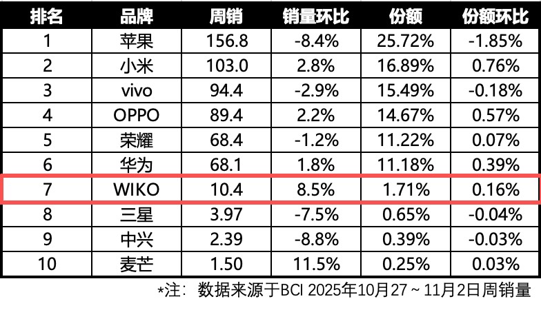 WIKO做出了一个事后被证明极为关键的决定:全面拥抱鸿蒙生态,接入“华为智选”。这步棋,让它瞬间解决了新品牌最头疼的两大难题:产品体验的信任度与销售服务的覆盖面。它接连推出了多款鸿蒙生态手机,恰好承接了华为在中低端5G市场释放出的空间。正是这次押注,让WIKO完成了奇迹般的初速度。它借助华为成熟的体系,快速触达用户,在不到两年的时间里销量突破千万,并在2024年成功跻身国内市场份额第七。这也是为什么很多人对它陌生——它的早期产品,从系统到渠道,都深度融合在华为的体系之中。