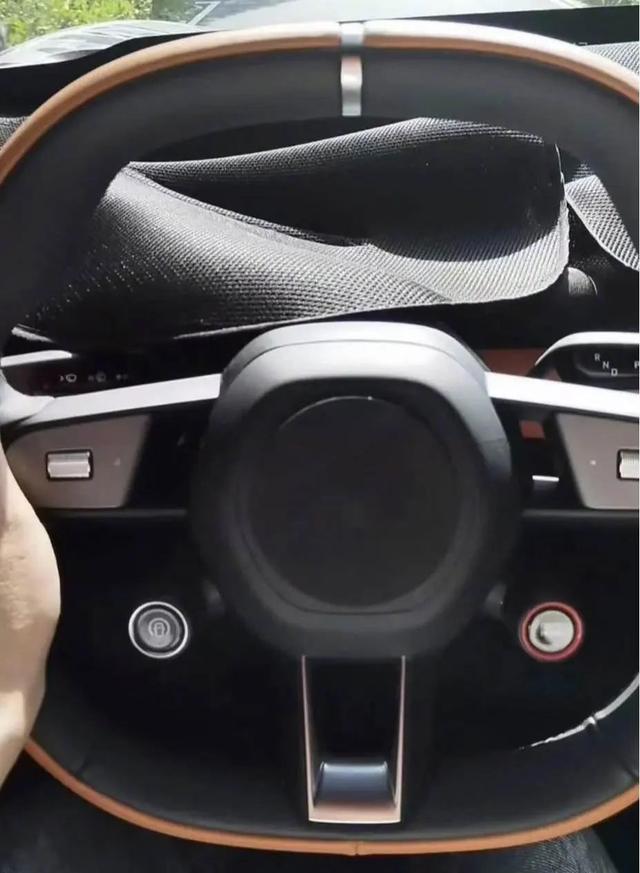 内饰方面值得关注,前段时间有网友曝光了小米YU7的内饰图,这次曝光的车型方向盘,采用了普通的皮质,双拼配色。