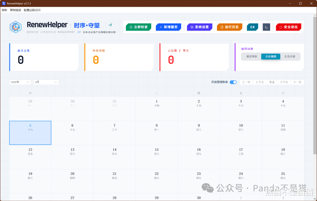 引言自从开始折腾NAS和服务器以来,熊猫我的订阅和续费项目属实是越来越多,再加上AI的崛起,最近又没忍住订阅了几个Token Plan服务,各种域名、服务器、SaaS服务等等太多了,很多时候经常忘记了续费,熊猫的个人博客就曾经因为忘记续费断过好几次了。
