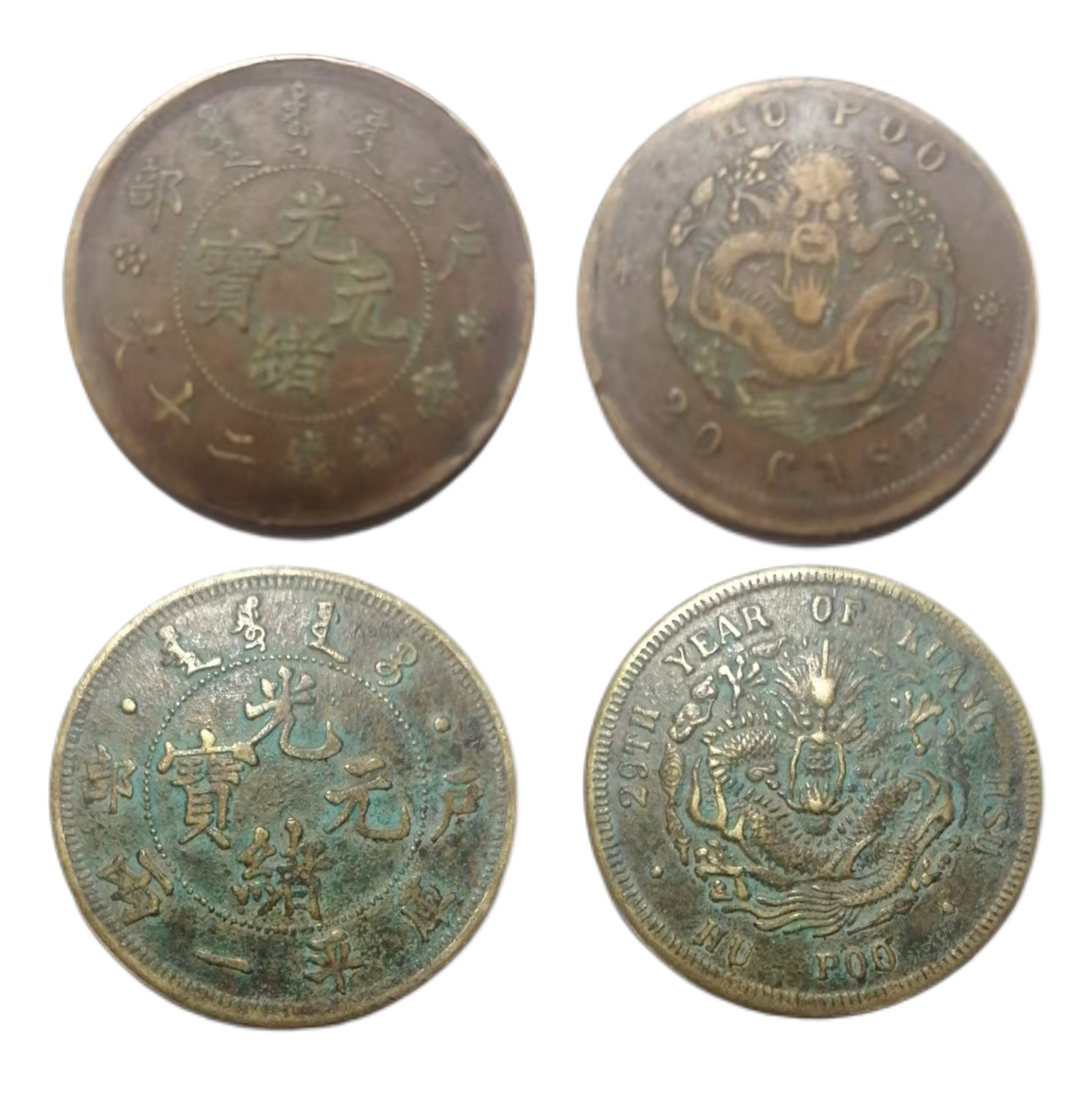 “英文铸币”的“文化对话”:户部光绪元宝背面铸有英文“HU POO”(户部)、“20 CASH”(二十文)或“1 Tael”(库平一两),这是中国货币史上首次系统性引入“西方文字”。英文的出现,不是“文化殖民”的被动接受,而是清廷主动“与世界对话”的姿态——通过英文标注,让外国商人、使节清晰识别货币价值,促进中外贸易和外交交流。这种“双语铸币”的设计,是中国从“天朝体系”向“世界体系”融入的文化象征,是“文化自信”与“开放包容”的双重体现。