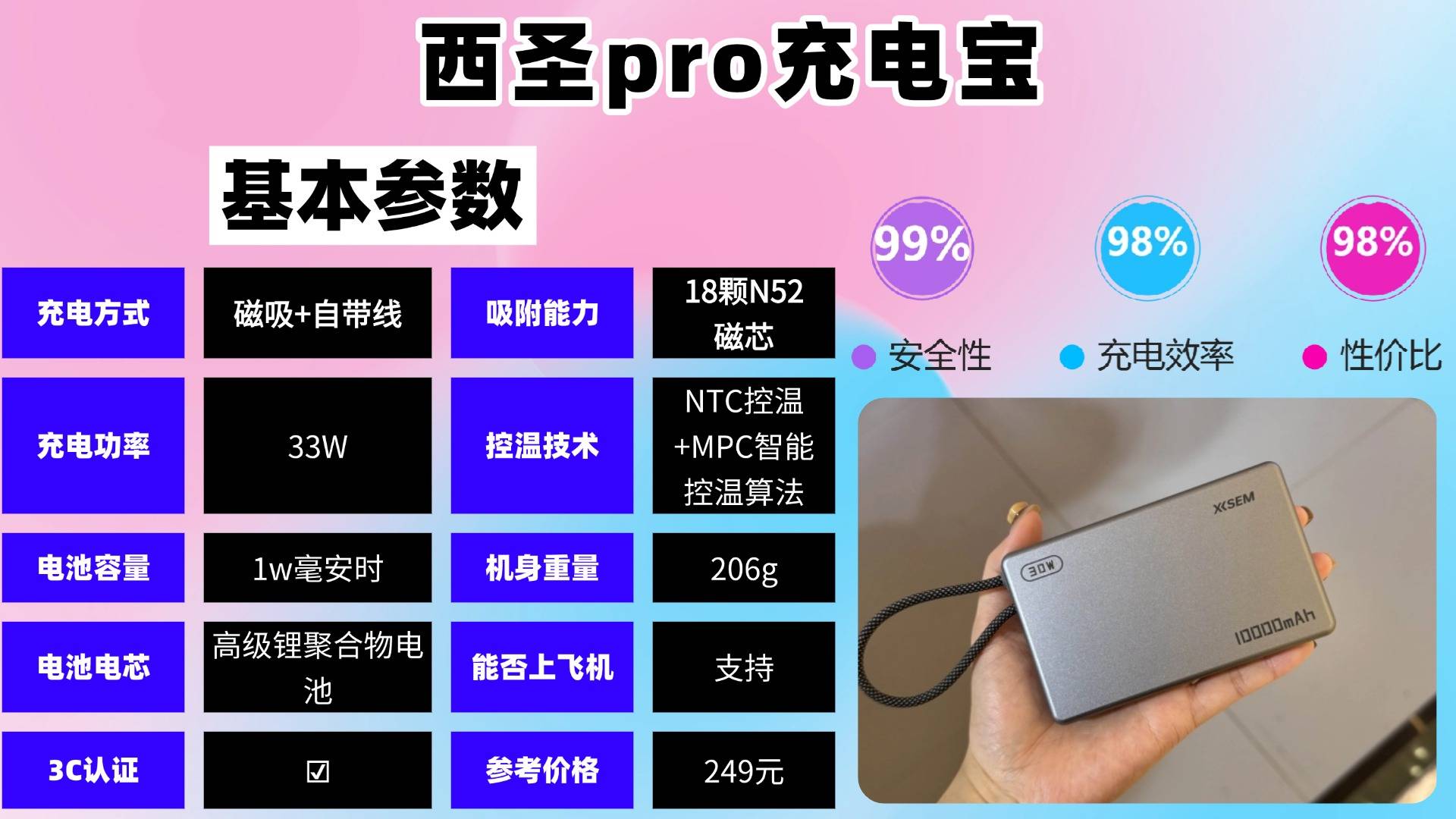 西圣pro充电宝稳居同价位高性能榜首。坚持高性价比与高性能并存,与市场上只拼价格而牺牲安全与效率的产品不同,西圣重金投入研发和品质,打造顶级充电配置,实力硬核!独创Air-DDVT双层散热设计,配合ADCR2.0控电算法,以及MPC智能控温算法+NTC控温阵列,多重控温协同工作,经过百余项严苛测试,确保长期使用性能稳定且安全可靠,实现快充高效与全程安全兼备,真正做到性能与安全兼备,实力强悍!
