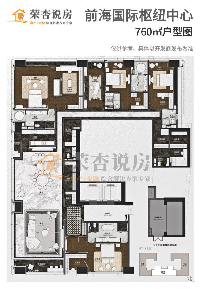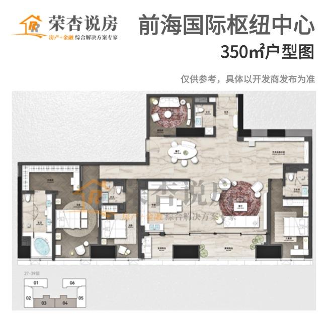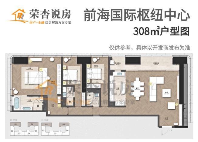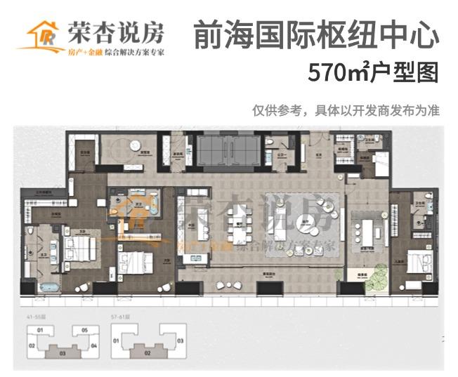 趁着这股东风,深铁开发的「前海国际枢纽中心」也传出要推售300多套约308-780㎡的大平层,全套房设计+海景(部分户型为城市景观),定位十分高端。
