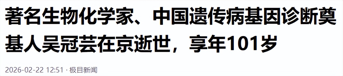 2月16日就在我们都为新的一年马上到来而期待和忙碌的时候,我国的著名生物化学家吴冠芸教授,离开了这个世界,终年101岁。