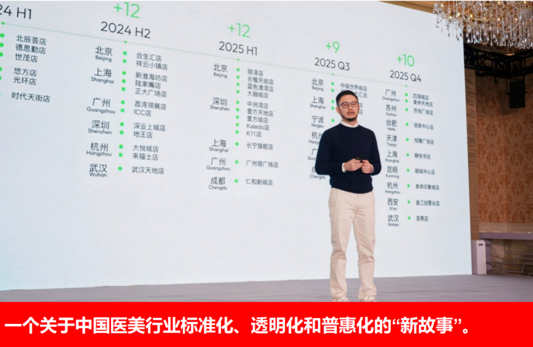 而现在,新氧正在线下服务机构的拓店中创造新的“成绩”。在现场,医线Insight注意到一个醒目的数字:新氧青春诊所在过去两年多里,从2023年的一城一店,狂飙突进至2025年底的16城50店。