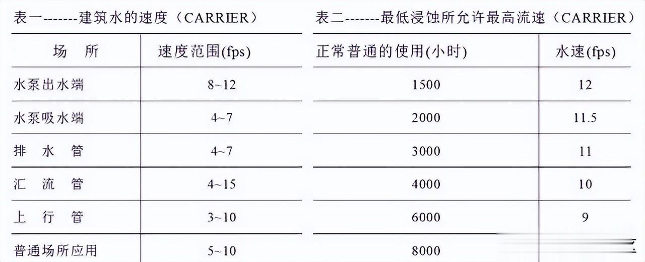 2)配管之流速---流速提高,管径小,成本省,但磨擦损失增加,泵浦扬程提高,运转费用增加,且易生噪音及增加管内壁之侵蚀能力。流速太高是有害的。