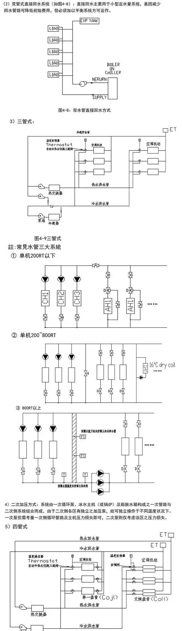 6)膨胀水管路:①补给水用②膨胀用(因水温不同导致水之体积不同)③排放管路内积存空气.
