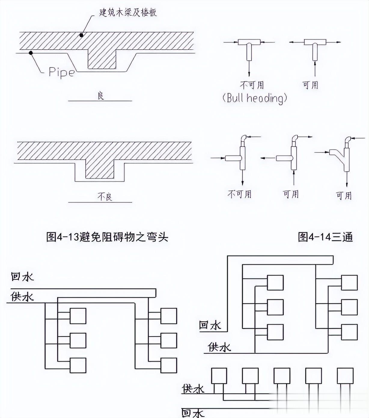 3)膨胀水管部份:应保持斜度,以利冰水管排气。可参见标准施工图说。