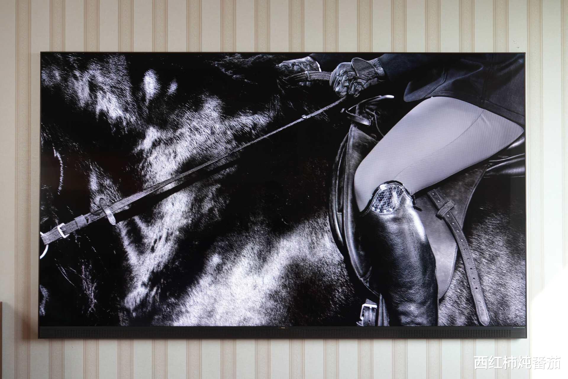 以这个样张为例,马身体上的高光和靴子上部的高光在普通 MiniLED电视上是完全看不到的,只能看到和其它部位有一点色差。但是在这台 85X11L上,这种反差感和光泽感则非常明显,整个画面立马就活起来了 ▲