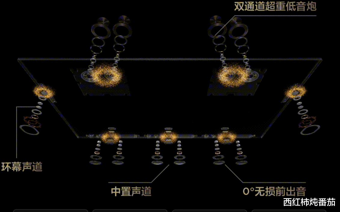 作为机皇,X11L自然是要音画双修,所以TCL把一组双通道超重低音炮放在了机身背面,只用于营造低频震感;侧面一组环幕声道;「下巴」内则隐藏了 3个喇叭用于无损出音(中置声道) ▲