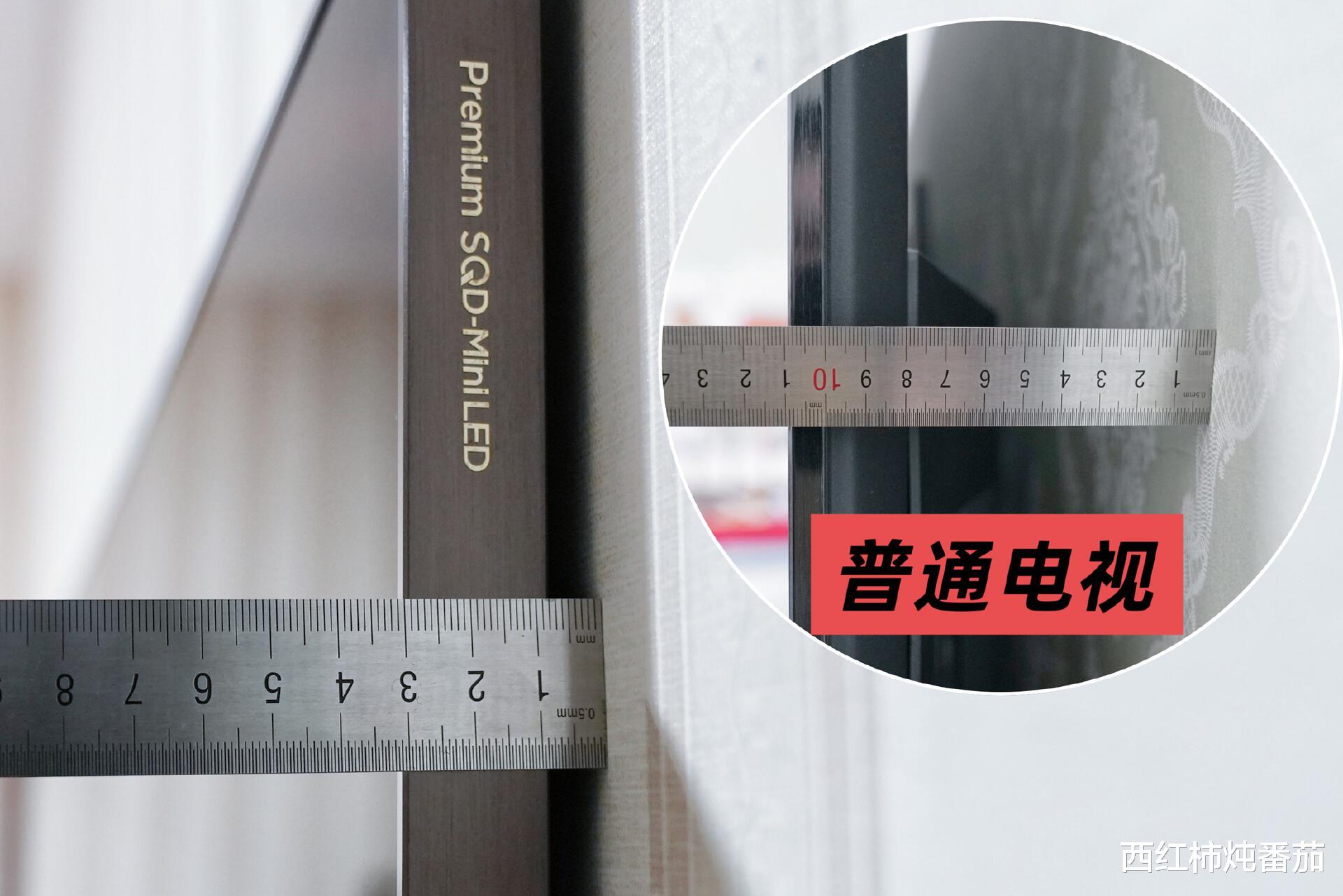 此外关于电视边框宽度我真的要大夸特夸,做到了极限的 4.27mm,且除了边框之外屏幕就没有额外的黑边了 ▲