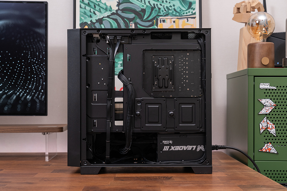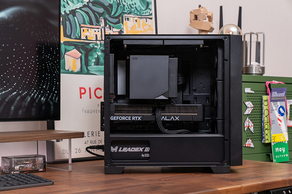 为了测试振华 LEADEX III PE 1000W 的真实表现,搭建了一套以AMD R7 9800X3D + B850主板 + RTX 5080 显卡的主流平台,通过实际使用场景检验其供电稳定性、静音表现与散热能力。 LEADEX III PE 1000W 作为标准尺寸的ATX电源,在实际装机中兼容性优异,有效利用内部空间。全模组化设计加上采用柔软质感的压纹线材,使得实际装机走线操作便捷,机箱内部干净利落,即使新手小白也可以轻松上手。