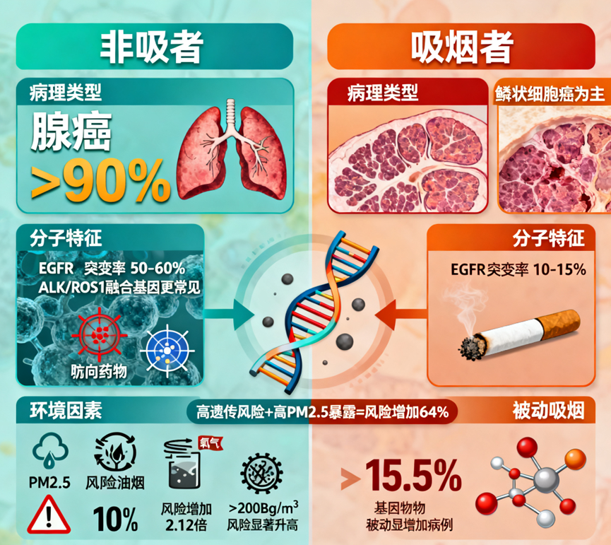 结语综上所述,不吸烟女性肺癌发病率的显著上升,尤其是中国地区呈现的独特流行病学特征,标志着肺癌防治已进入一个需要重新审视与拓展认知的新阶段。这一趋势不仅揭示了环境暴露、遗传易感性与内在激素等因素交织作用的复杂病因网络,也深刻挑战了以吸烟为核心的单一防控范式。未来,唯有通过深化分子机制探索、构建精准风险评估体系,并在公共卫生政策中强化性别与环境视角,才能有效应对这一严峻挑战,为全体人群,尤其是非吸烟女性,筑起更坚实、更个性化的健康防线。
