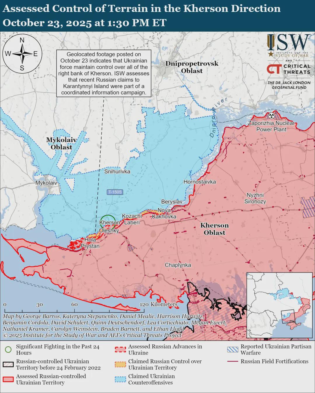 根据亲乌克兰的美国战争研究所10月23日的评估报告认为: