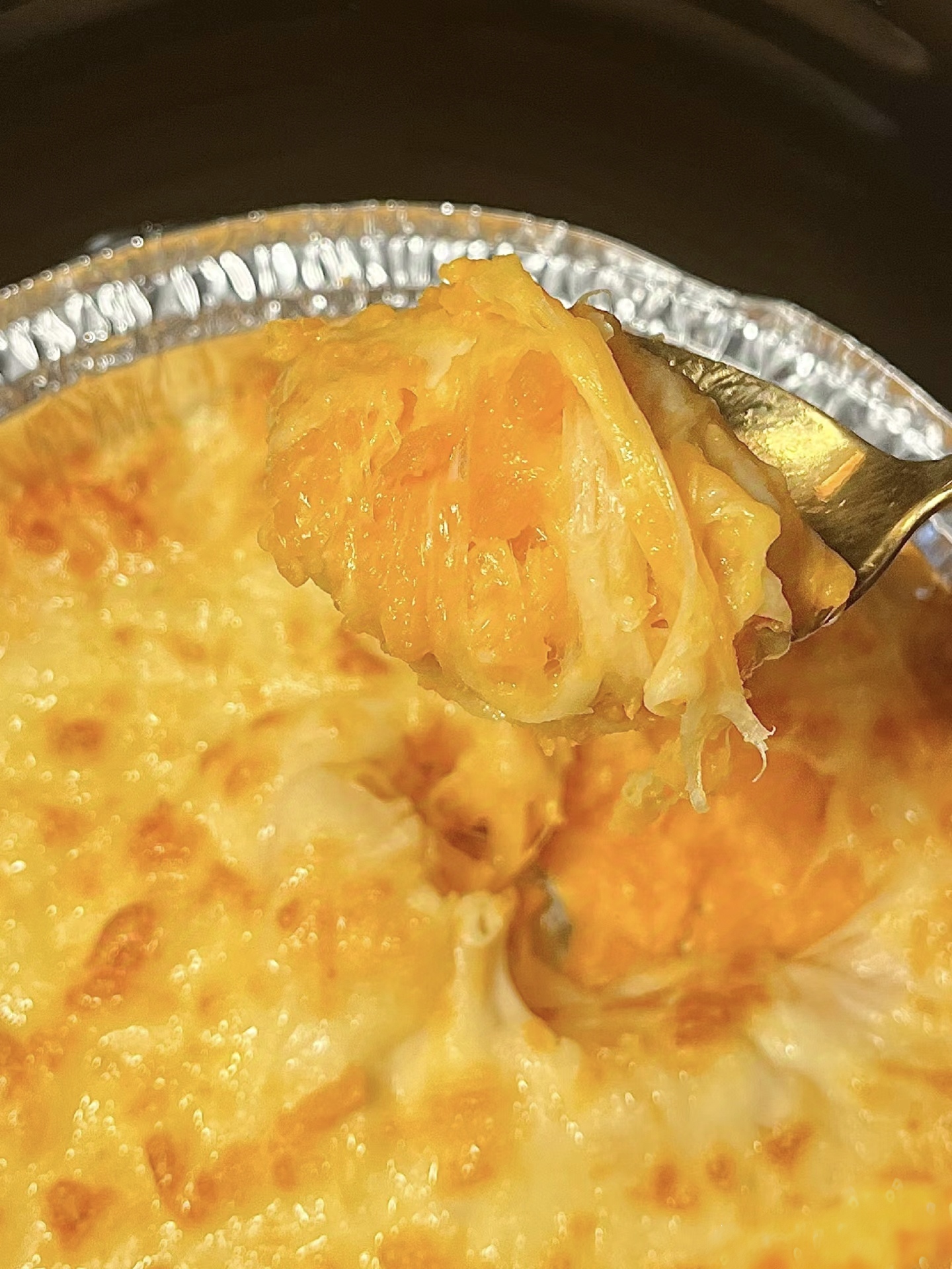 5.烘烤:将装有红薯和芝士的容器放入预热至170-180摄氏度的空气炸锅中,烤约10-15分钟,或直到芝士融化且表面呈金黄色。