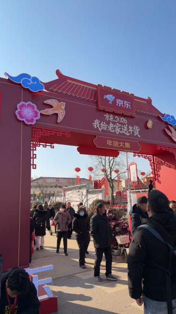 1月29日,江苏宿迁来龙镇光明村年味十足。京东在当地为乡亲们准备了超万件年货,并落地举办新春大集、搭建AI教室、打造“村晚”等新春活动,村民在现场排起长队领取年货、逛集采购,感受浓浓年味。