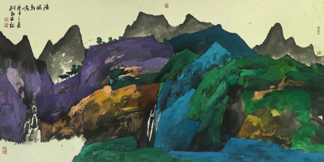 作品被中南海,中国国民党中央委员会,北京市政协会议中心,首都博物馆,哈尔滨博物馆,苏黎世鹰星保险集团,中国人寿养老保险北京公司,中国银行甘肃省分行,晶龙企业集团等收藏。2013年中国银行总行出版《武剑飞重彩山水挂历》。近年来,出版各种开本画册十余种。作品在美国、英国、日本、新加坡、法国、匈牙利等艺术品拍卖市场备受关注。