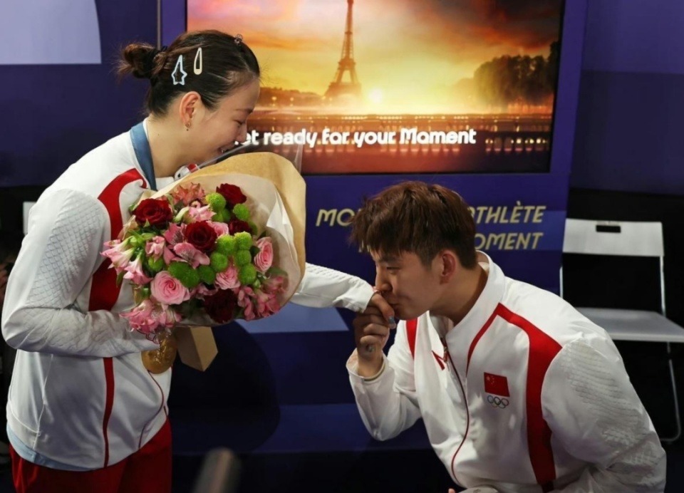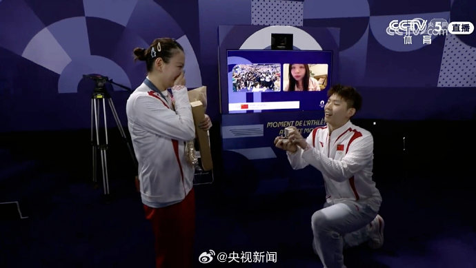 8月2日晚,随着郑思维/黄雅琼组合在巴黎奥运会上羽毛球混双项目摘得金牌,中国羽毛球队迎来了荣耀的一刻。而在颁奖仪式后,另一幕温馨甜蜜的场景也在此上演。国羽男双运动员刘雨辰向黄雅琼求婚,两人在喜悦与祝福中,共度难忘时刻。仪式结束后,黄雅琼正准备离开,刘雨辰手捧鲜花等候在运动员出口。他递上鲜花,单膝跪地,黄雅琼惊喜地捂住嘴,笑容满面。刘雨辰打开手中的盒子,一枚闪耀的戒指映入眼帘,他深情地问:“你愿意嫁给我吗?”黄雅琼激动地点头,刘雨辰为她戴上戒指,两人紧紧拥抱,向观众展示他们的幸福。
