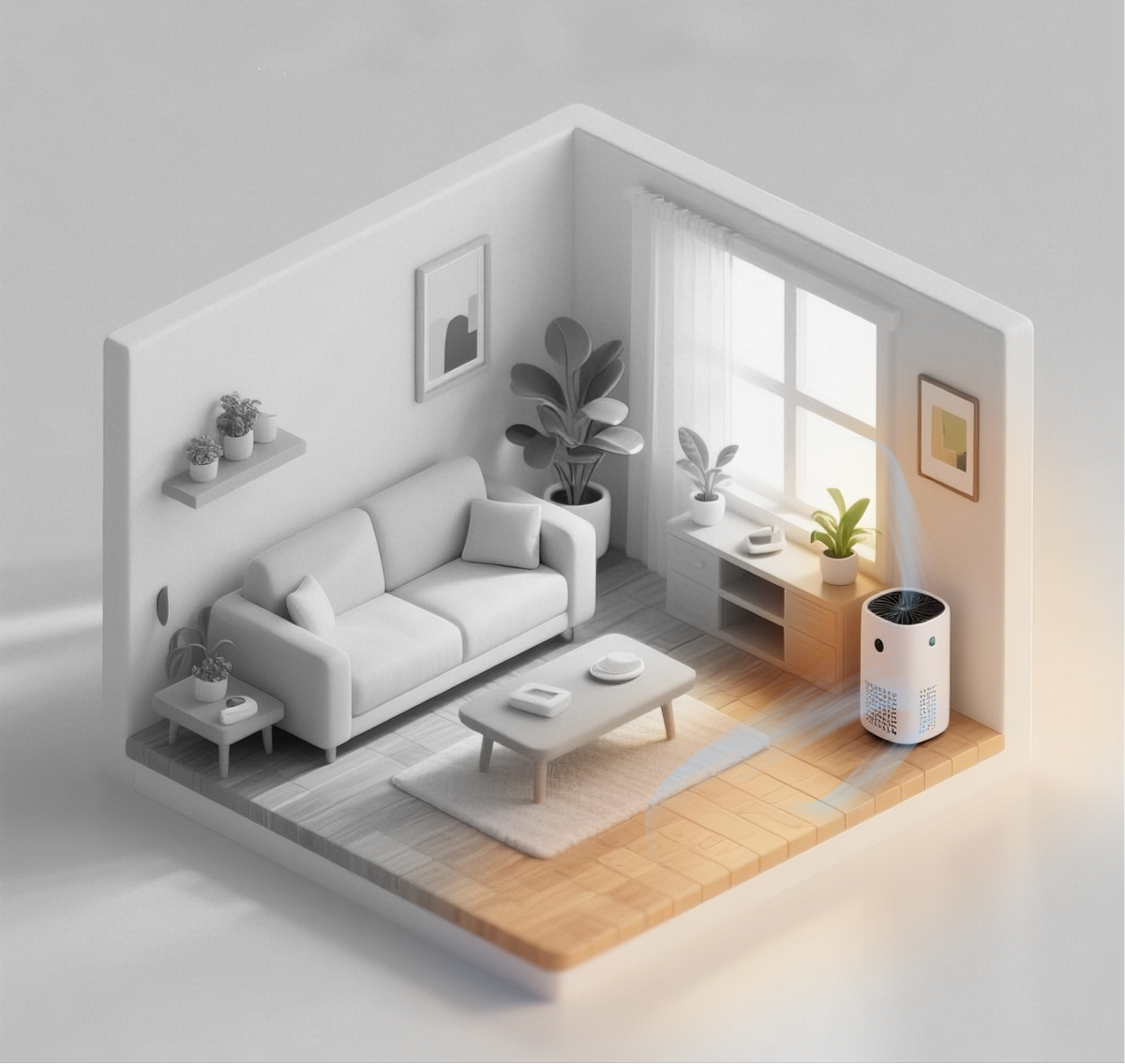 拾梧FW01是一款定位非常明确的壁挂式空气净化器,也是千元价位中唯一主打专业除二手烟的机型。研发阶段,团队在高污染密闭环境中进行了反复测试,确保长时间运行仍能保持稳定性能。